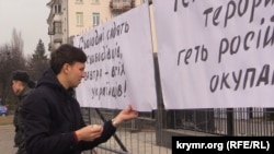 Глава крымского отделения ВО «Свобода» Александр Болтян в комментарии для Крым.Реалии выразил недоумение по поводу того, на каком основании российские правоохранители взялись судить крымчанина за поступок, якобы совершенный им на территории Украины.