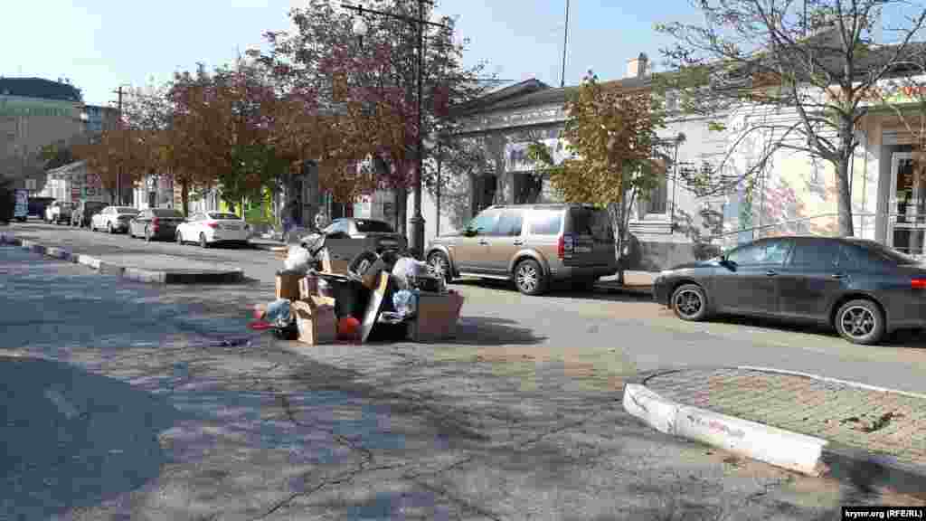 В центре Керчи местные жители складируют бытовые отходы прямо посреди улицы. Груды мусора лежат и на одной из центральных улиц города – улице Козлова, которая соединяет улицу Ленина и центральный рынок.